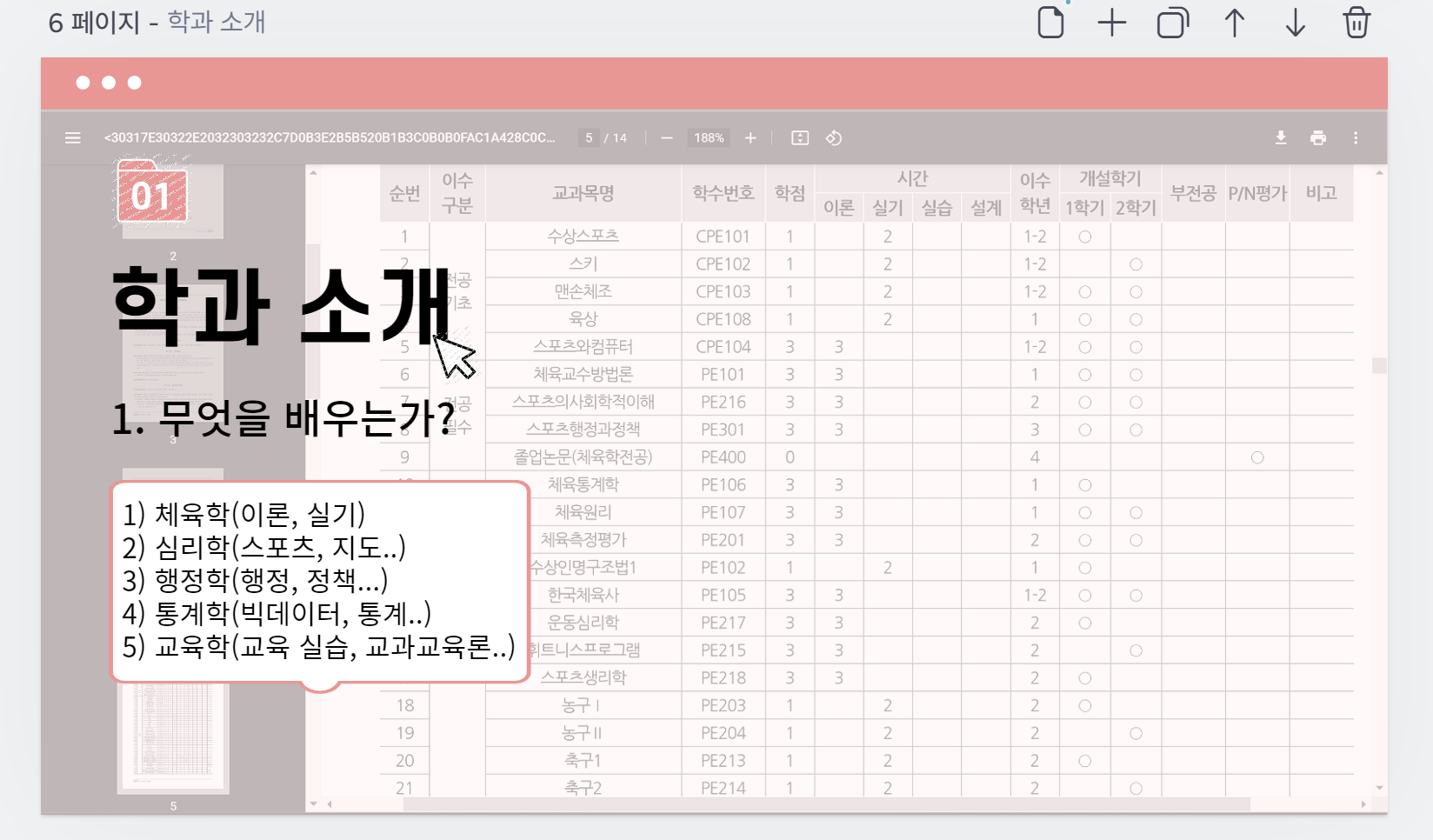 크게 이론과 실기 과목으로 분류하고, 그 안에서 또 여러 과목들이 나뉘어서 본인이 듣고 싶은 과목을 듣을 수 있다는 점을 알려주었다(물론 손가락 부러질 정도의 마우스 난타와 심장 아플 정도의 수강신청...은 언급하지 않았다..ㅋㅋㅋㅋ) 일단 계열 별(체육, 간호, 의학, 공과, 경영, 등등) 멘토가 나뉘기 때문에, 필자 본인도 체육 계열에 관심이 있는 학생들을 대상으로 멘토링을 진행했다. 확실히 경영이나 의학과 같이 타 인기 계열에 비해 수는 적었지만 체육에 대한 흥미와 진로가 뚜렷한 학생들을 대상으로 진행해서 그런지 막힘 없이 잘 진행했던 것 같다.
