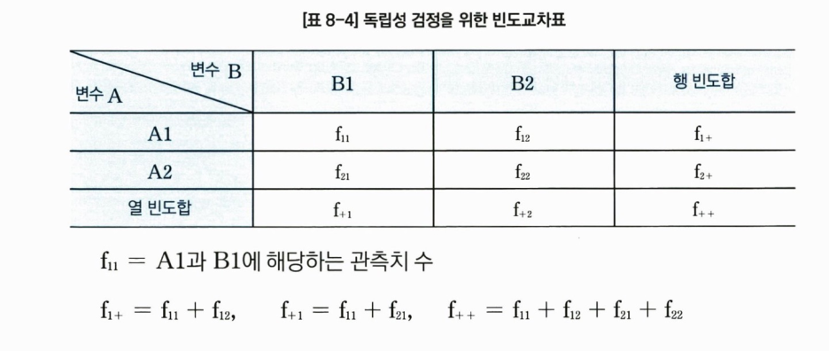- 독립성 검정 : 두 범주형 변수 사이의 연관성이 있는지를 검정(ex. 직업유형과 선호상품이 서로 관계가 있는지 검정)