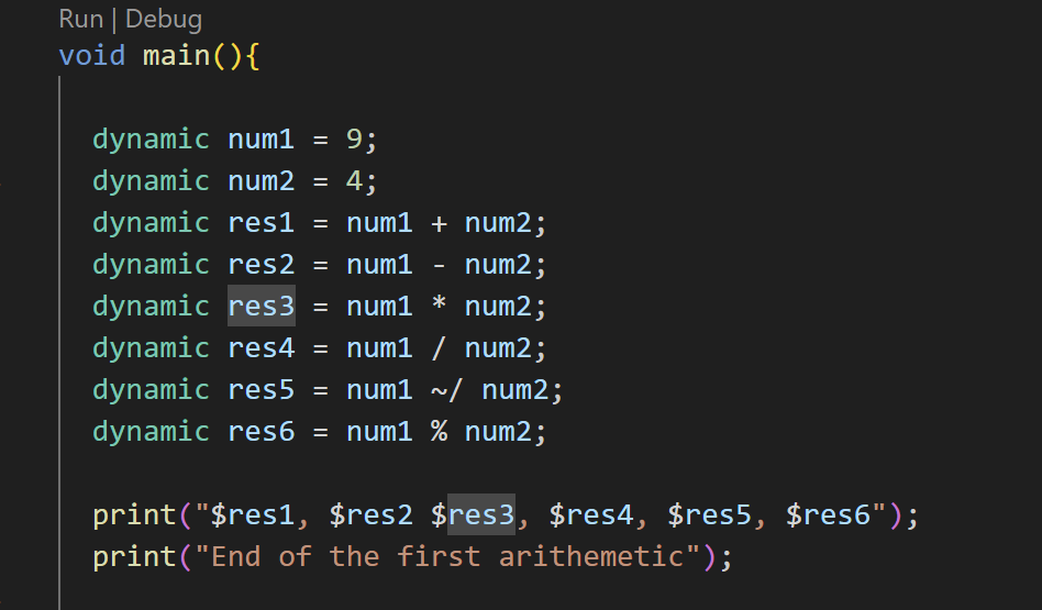 > ์์๋๋ก ๋ํ๊ธฐ(+), ๋นผ๊ธฐ(-), ๊ณฑํ๊ธฐ(*), ๋๋๊ธฐ(/), ๋ชซ(~/), ๋๋จธ์ง(%) ๋ฅผ ์๋ฏธํ๋ค.