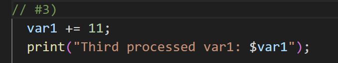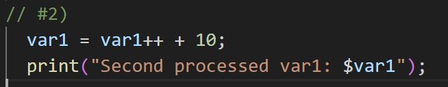 ๋ฐ๋ผ์ ์์ ์์ ๊ฐ์ ๊ฒฝ์ฐ, 1) var1์ ๊ฐ์ 10์ ๋ํ๋ฉด 12, 2) ์์ 1)์ ๊ฒฐ๊ณผ๋ฅผ var1์ ์ ์ฅํ ํ, 3) var1์ ๊ฐ์ 1๋งํผ ์ฆ๊ฐ์ํจ๋ค.