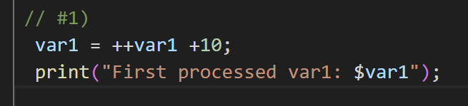 ๋ฐ๋ผ์ ์์ ์์ ๊ฐ์ ๊ฒฝ์ฐ, 1) var1์ ๊ฐ์ 10์ ๋ํ๋ฉด 12, 2) ์์ 1)์ ๊ฒฐ๊ณผ๋ฅผ var1์ ์ ์ฅํ ํ, 3) var1์ ๊ฐ์ 1๋งํผ ์ฆ๊ฐ์ํจ๋ค.