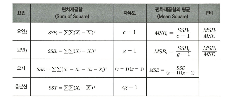 cf) 이원분산분석 F검정의 통계량 산출공식