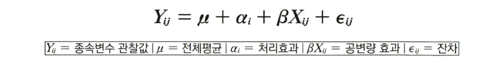 일반적인 공분산분석의 모형. (공변량을 포함한 분산분석의 모형)
