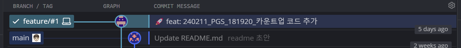 (*์ปค๋ฐ์ ์์ commit message๋ฅผ ์์ฑํ๋๋ฐ ์ด๋, "๋๋ ๋ฌด์จ ์์ ์ ํ์ผ๋ฉฐ, ์ด๋ป๊ฒ ๋ณ๊ฒฝ๋์๋์ง"์ ๋ํด ๊ฐ๋จํ๊ฒ ๋ช ์ํด์ค์ผ ํ๋ค. -> ์์ฑ ์์์ issue ์์ฑ ๋ฐฉ์๊ณผ ๋ง์ฐฌ๊ฐ์ง๋ก ์ง๋จ ๋ด ์ฝ์์ ๋ฐ๋ฅผ ๊ฒ!)