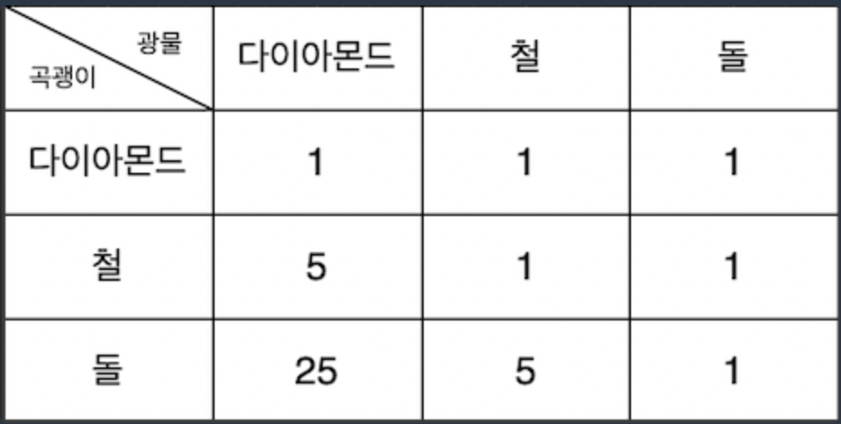 answer += dia_ + iron_ + stone_ # ๊ณก๊ดญ์ด ํ๋๋ฅผ ์ฌ์ฉํ์ผ๋ฉด, new_list์ ์์๋ค ๊ฐ์๋งํผ ๋์ ํฉ.