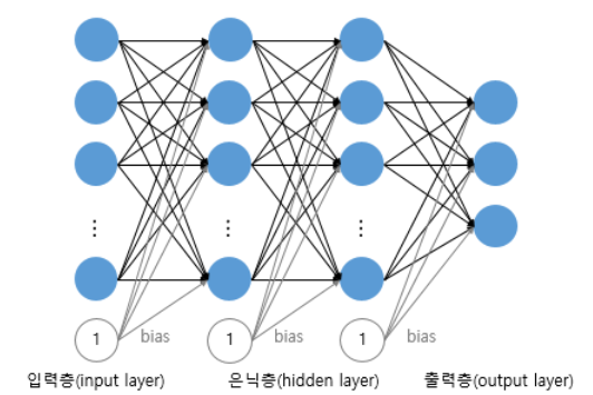 - 다층 퍼셉트론 : 입력층 / 은닉층(hidden layer) / 출력층