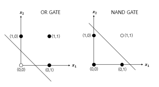 단층 퍼셉트론은 어떤 일을 할 수 있을까?? 컴퓨터는 0, 1을 입력해 하나의 값을 출력하는 회로가 모여 만들어지는데, 이 회로를 게이트(gate)라고 부른다. 단층 퍼셉트론을 이용하면 AND. NAND, OR 게이트는 구현이 가능하며, 이 게이트 연산에 쓰이는 것은 '두 개의 입력값'과 '하나의 출력값'이다.