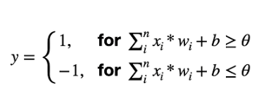 퍼셉트론에서도 가중합의 크기를 임계값과 비교하는 '활성화함수'를 거쳐 최종 출력값을 결정한다. 활성화 함수의 경우 앞서 머신러닝 파트에서도 다룬 적이 있다. 바로 시그모이도와 소프트맥스와 같은 함수인데, 퍼셉트론에서는 '계단 함수(step function)'를 사용한다.