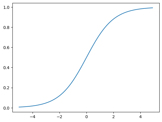 z = np.arange(-5, 5, 0.1)