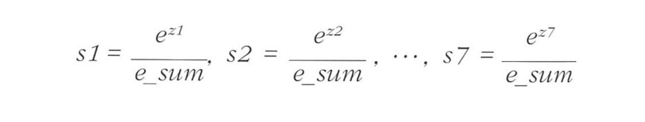 다중분류는 소프트맥스 함수를 사용하여 7개의 z값을 확률로 변환한다.