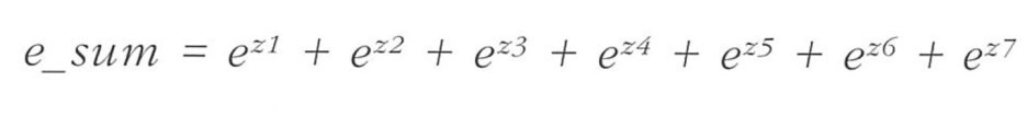> 5개의 특성을 이용했기 때문에, coef_ 배열의 열 또한 5개이다. 하지만, 행은 왜 7개일까? intercept, 절편도 7개다. 이는 다중 분류의 특성에서 비롯된 것인데, z값을 클래스마다 하나씩 계산한다. 그 중에서 가장 높은 z값을 출력하는 클래스가 예측 클래스가 되는 구조다. 그렇다면 확률은 어떻게 계산하는가?