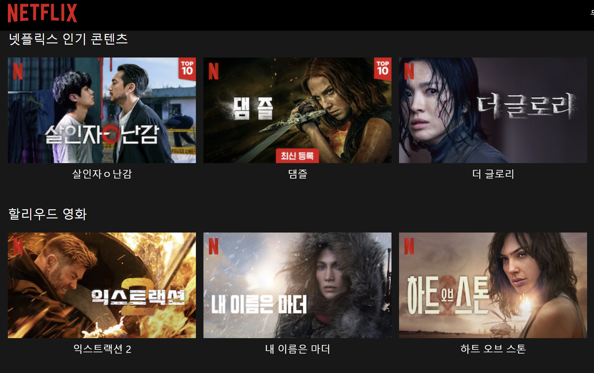 Ex) '์ด๋ฒ ์ฃผ ์ธ๊ธฐ ๋๋ผ๋ง ์์', '๋ด์ค ์๋ํฐ's ํฝ', '์ง๋ ์ฃผ ํนํ ์ํ ๋ชฉ๋ก' ๋ฑ