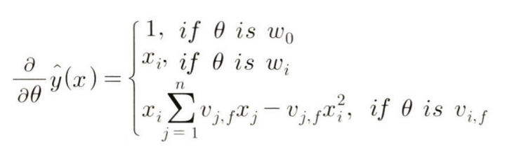 ➡️ x는 MF 처럼 각 유저나 아이템을 나타내는 것일 수도 있고, 장르나 시간과 같이 별도의 변수일 수도 있다. 어떤 경우이든 하나의 변수인 x(i)에 대해 하나의 편향값(w(i))과 k개의 특성값(feature)를 갖는다.
