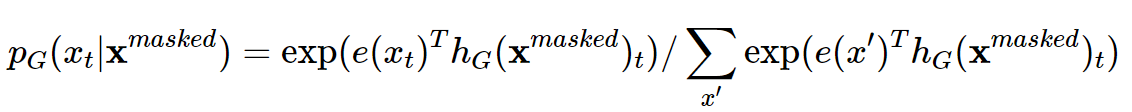 3️⃣ 마스킹된 입력 x𝑚𝑎𝑠𝑘𝑒𝑑에 대해서 generator는 원래 토큰이 무엇인지 예측한다.