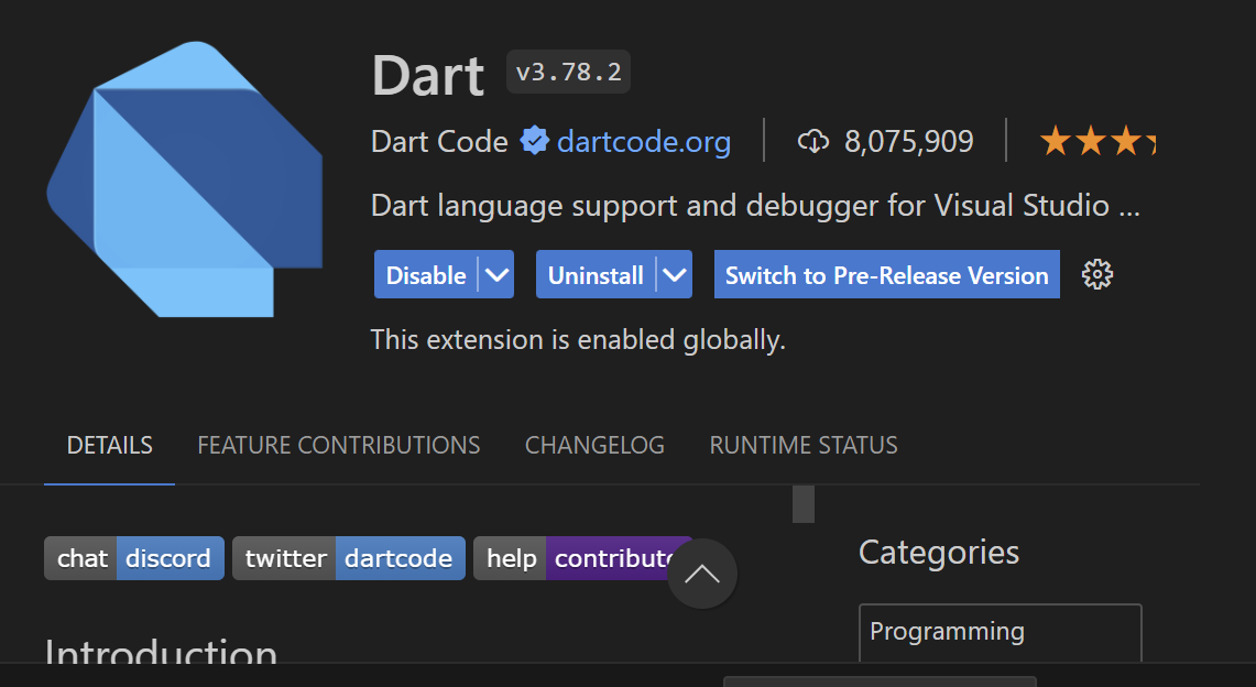 - ๋ฒ์ ์ ๋ฐ๋ผ ์ฐจ์ด๊ฐ ์๊ฒ ์ง๋ง, ์๋์ ๊ฐ์ ํ๋ฉด์ด ๋ด๋ค๋ฉด ์ด์ ์คํ๋ผ์ธ์์๋ vscode๋ฅผ ์ด์ฉํ Dart ์ฌ์ฉ์ด ๊ฐ๋ฅํ๋ค!