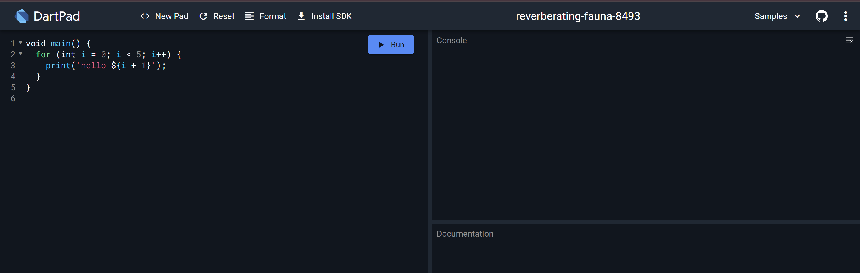 <DartPad> # ์จ๋ผ์ธ ๊ฐ๋ฐ ํ๊ฒฝ ์ฌ์ฉํ๊ธฐ