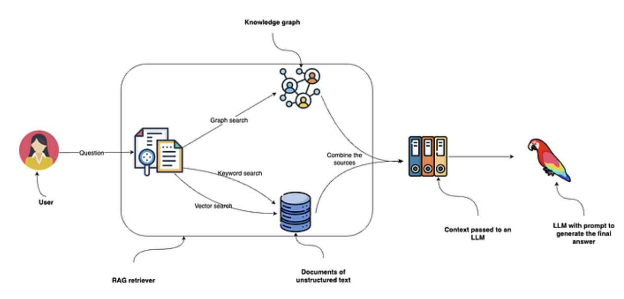하지만 실제 비즈니스 환경에는 문서와 같은 비정형 텍스트 외에도 숫자(가격 정보 등), 집계, 관계와 같은 구조화된 속성 요소들이 많이 포함된다. 즉, 실제 데이터 시나리오를 거치면서 처리할 때 내부 chain 구조에서 쿼리의 정확성과 효율성이 저해되는 문제가 발생하게 된다.